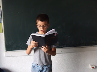 O nosso duende Duarte faz hoje 10 aninhos. Quando chegou às minhas mãos, em janeiro de 2009, era uma criança super insegura e tímida. Recordo-me vivamente dele ainda nem saber ler (coitadinho!) e os meus outros duendes já estarem a entrar nos casos especiais. Ao fim de um mês de aulas, o Duarte conseguiu apanhar, na leitura, a maioria dos colegas... Sempre com um enorme sorriso nos lábios, super meigo e imensamente simpático, extremamente influenciável vai na onda de qualquer colega, o que às vezes o leva a ter alguns dissabores. Todos os colegas gostam de jogar e brincar com ele, devido à sua fantástica maneira de ser!